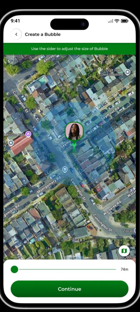 Sometimes you want your family to know you’re safe without sharing every step of your journey. With Amanati, you can create a Bubble — a temporary safety zone around your location. Choose the size of the Bubble, set how long it lasts, and your family will see that you’re safe inside it until it “pops.”