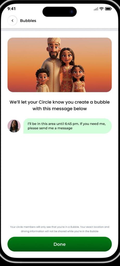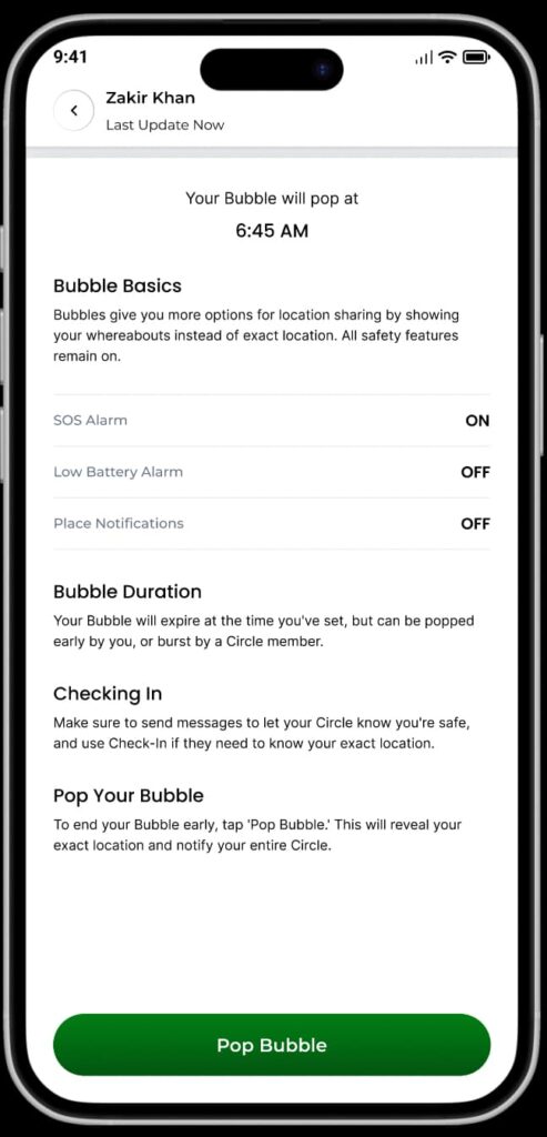 If plans change, you can end the Bubble early, and your family will be notified right away. All safety features like SOS remain active, so you’re always protected while enjoying more privacy.